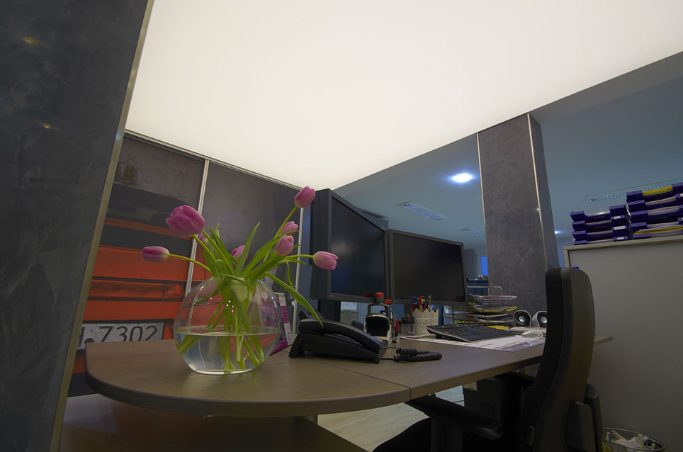 Comme un avantage supplémentaire en particulier, les revêtements en tissu peuvent même être imprimés individuellement, utilisés comme une installation lumineuse ou même mis en œuvre acoustiquement efficace.